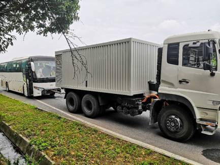 負荷拖車能夠?qū)崿F(xiàn)在全功率范圍的加載動力輸出。在進行試驗時,負荷試驗系統(tǒng)由負荷拖車與被試驗車輛組成,由被試驗車輛牽引前進,通過對被試驗車輛實施精細調(diào)節(jié)且穩(wěn)定的任意負荷,來測量車輛行駛過程中各種負荷的參數(shù)值,例如:車速、發(fā)動機轉(zhuǎn)速、牽引力、滑轉(zhuǎn)率、牽引功率、驅(qū)動輪轉(zhuǎn)速、實際行駛距離、試驗運行時間等。